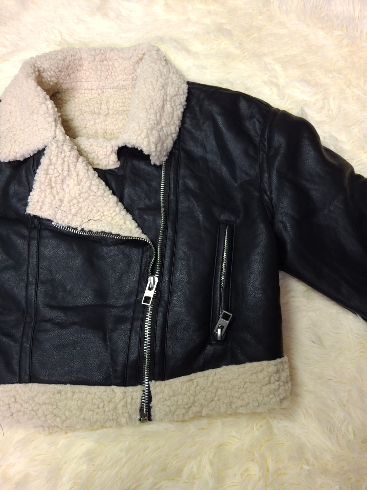 CAMPERA GAMULAN NEGRO CON CORDERITO BLANCO