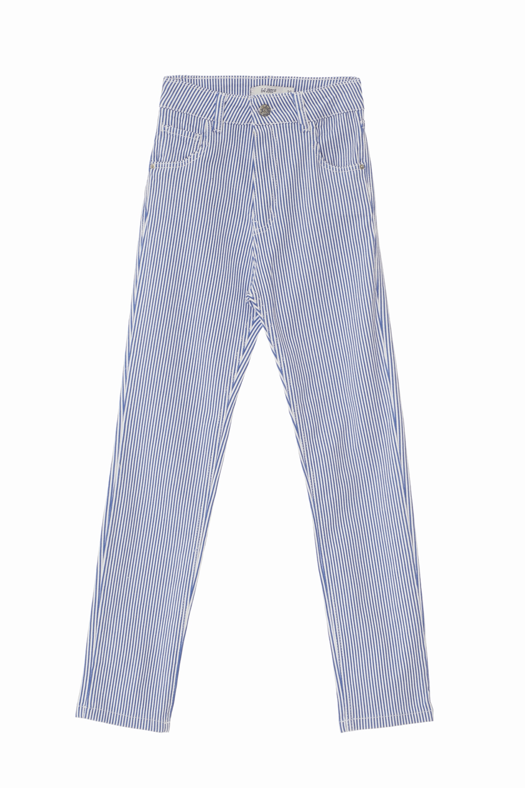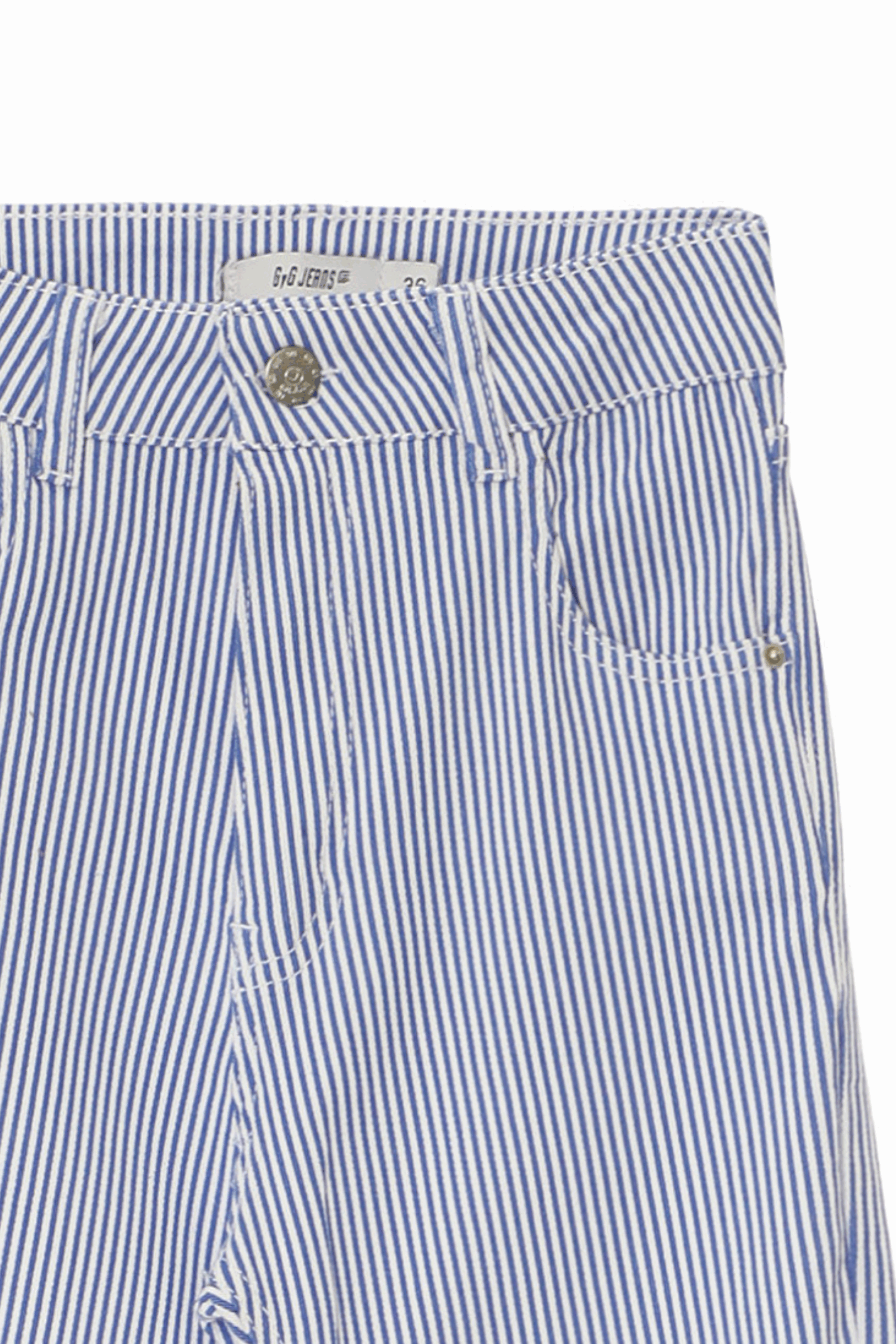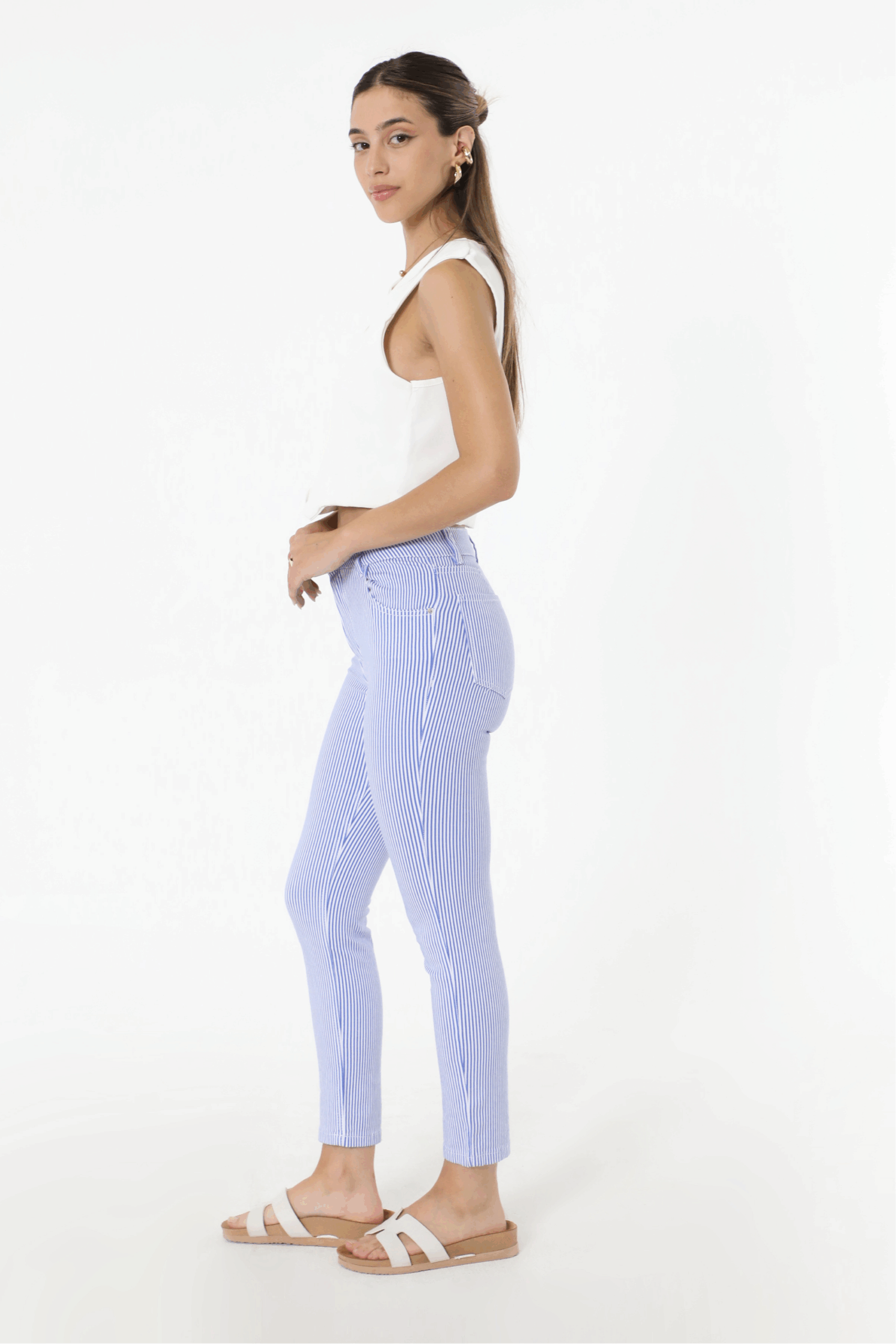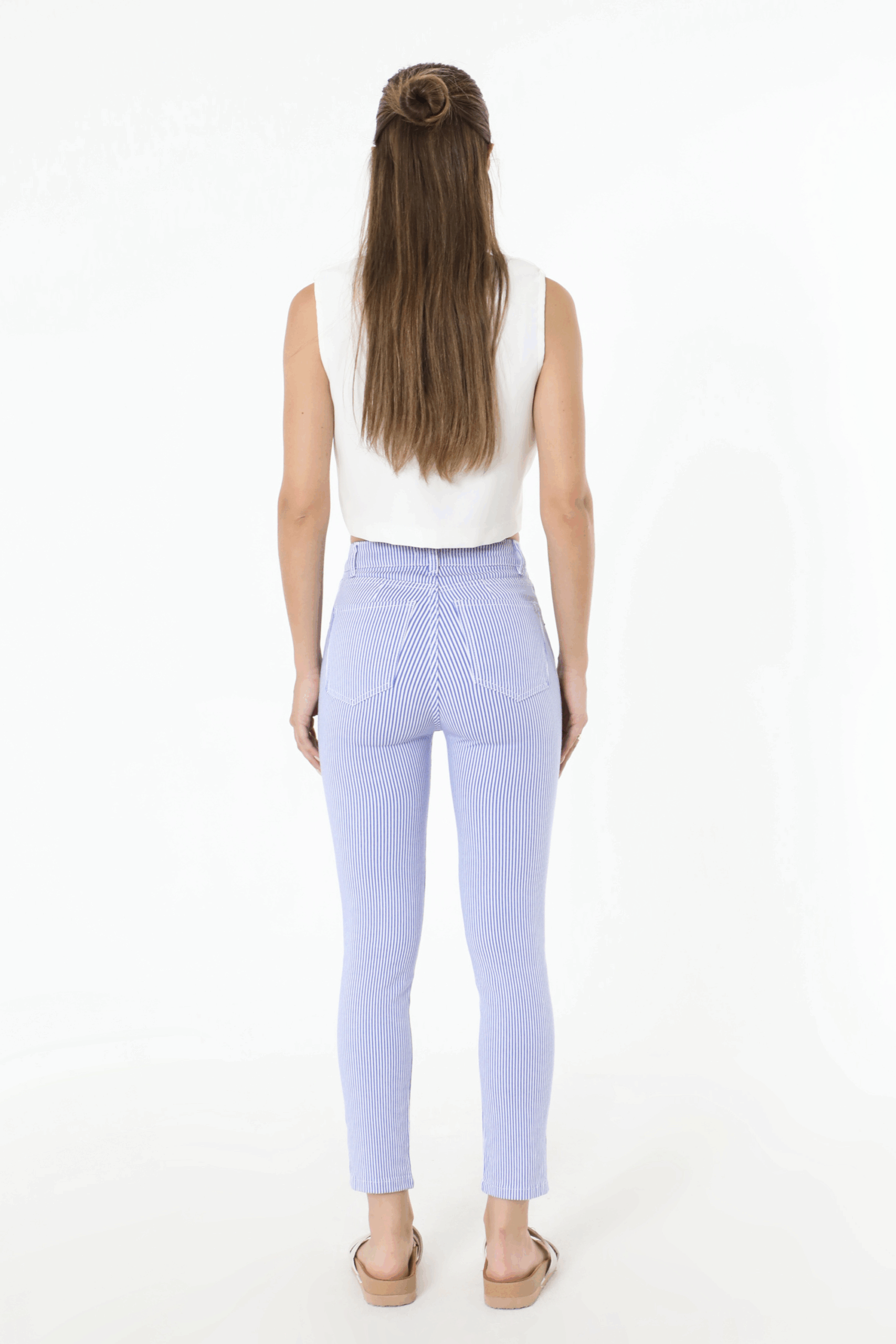 Skiny tiro alto rayado azul con blanco elaztizado al tobillo.