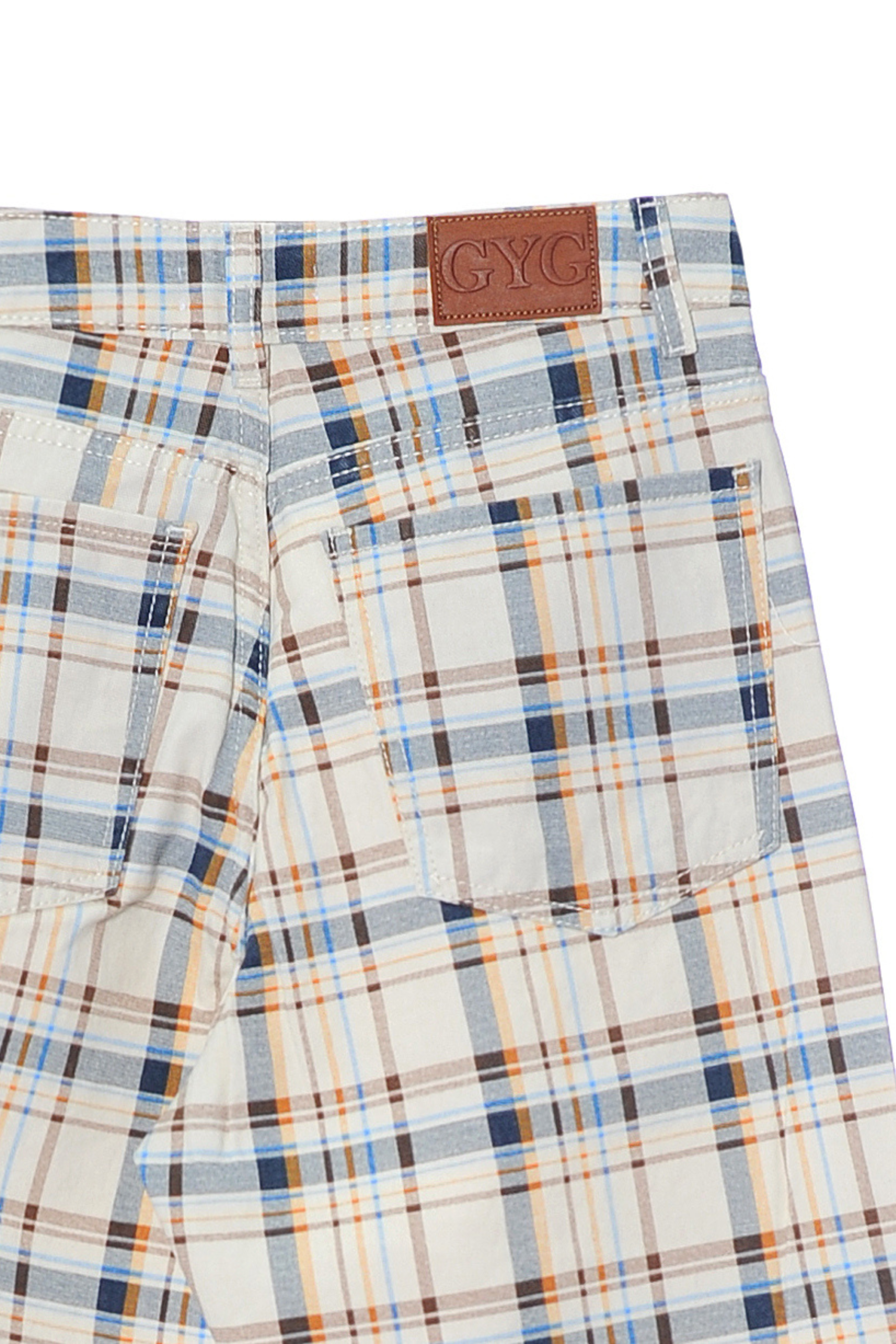 Wide leg tiro medio rigido, estampado cuadrille.